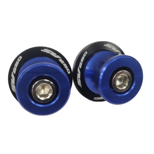 Blue Rear Swingarm Spools Paddock Stand Bobbins - Suzuki SV650 / S 1999-2025
