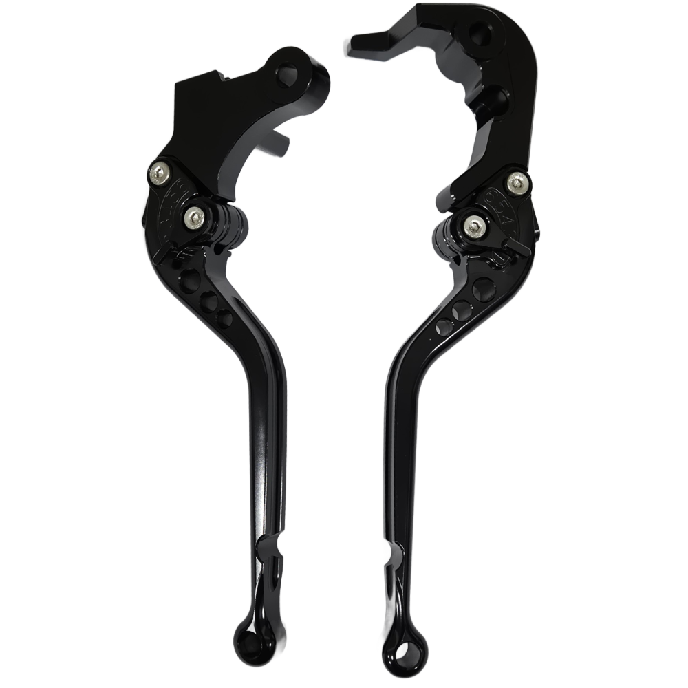 Replace your standard bike levers with these aftermarket fully adjustable levers. Allowing you to choose a comfortable set position on each lever. These are a long style, also meaning '4 finger' operation.