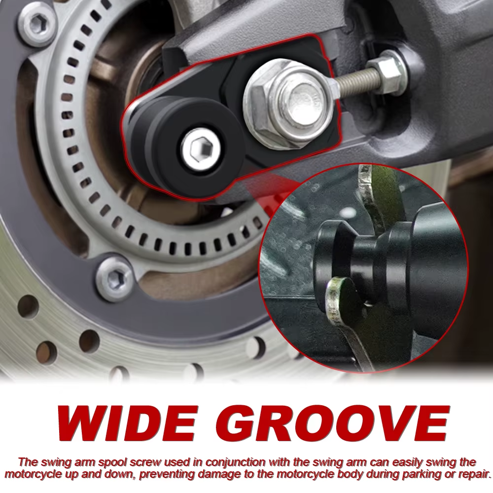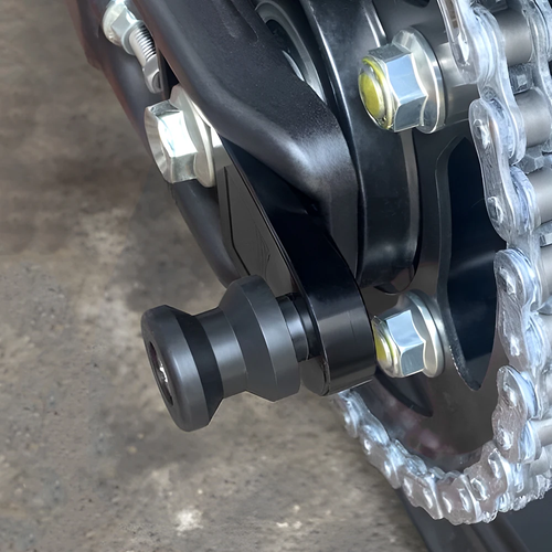 These off-set rear spools are essential for mounting a paddock stand. Without these adapters, standard swingarm spools cannot be used on this model.