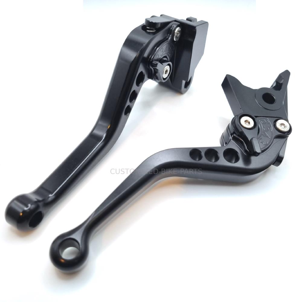 Replace your standard bike levers with these aftermarket fully adjustable levers. Allowing you to choose a comfortable set position on each lever. These are a short style, also meaning '2 finger' operation.